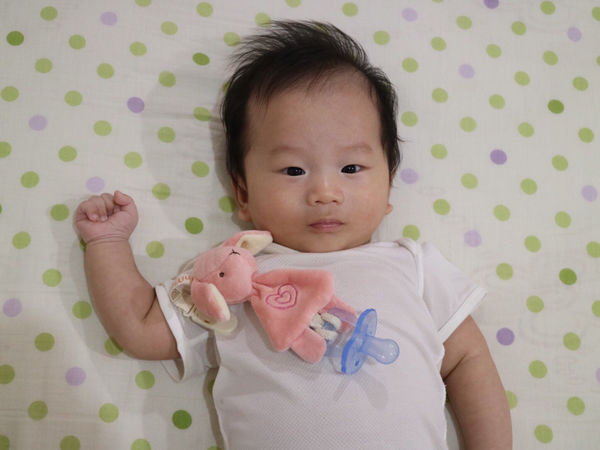 不管是吸著奶嘴、還是放在身上都好可愛哦![]()