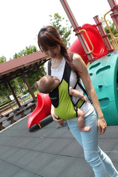 平時帶兩個孩子去公園玩我會用背巾背著小果(推車體積大,公園有點坡度&階梯推起來有點累人),如果走著走著他剛好睡著就省事多了!!
